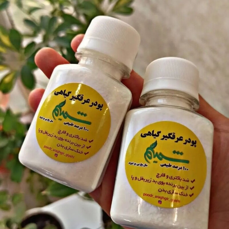 پودرعرقگیر ۱۰۰ درصد گیاهی با این پودر با بوی ید بدن خداحافظی کنید با زدن این پودر تا حمام بعدی بو نمی دهید در صورت بوی بد میتوانید پودر را برگشت بزنید