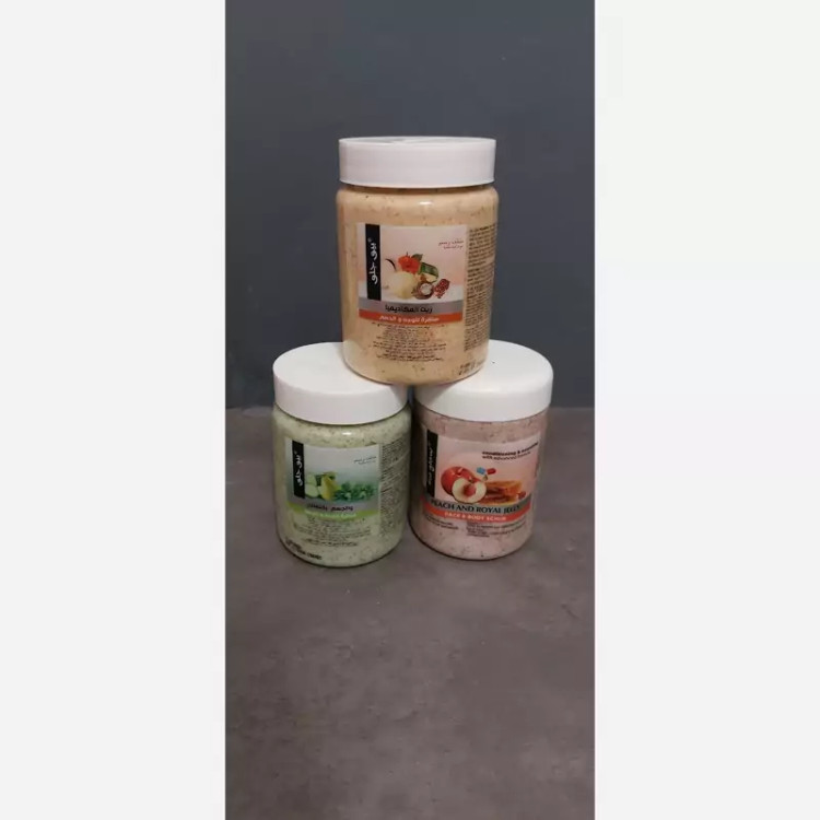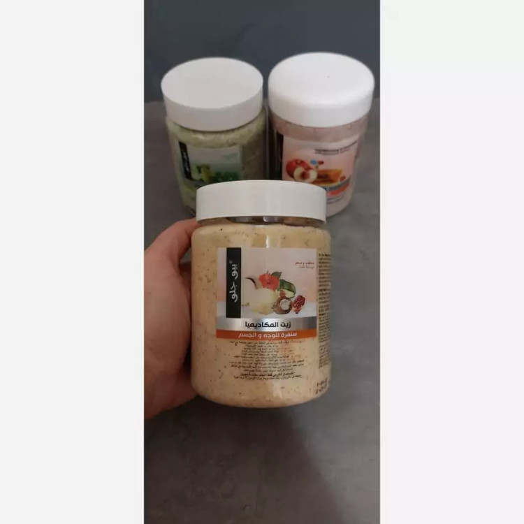 اسکراب بدن و صورت نیم لیتری اماراتی کاملا اورجینال دارای سه رایحه لایه بردار قوی پوست از بین بردن دونه مرغی بدن