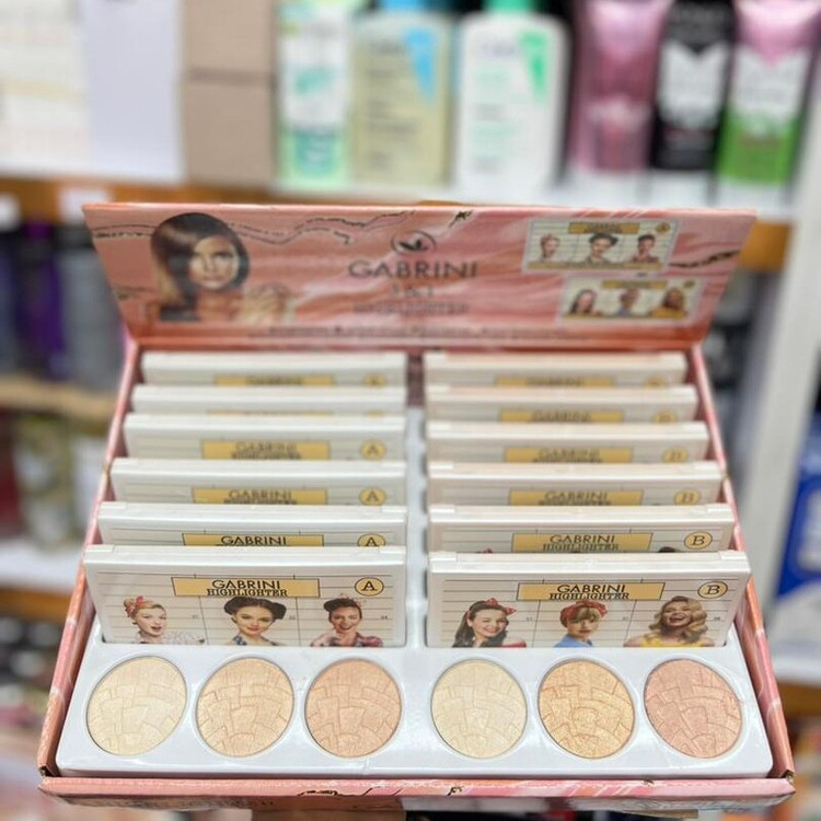 هایلایتر گابرینی پالت هایلایتر گابرینی یکدست کردن پوست درخشان کننده ی صورت دارای رنگ های ملایم دارای پیگمنت های غنی موجود در دومدل درخشان کننده پوست قابل استفاده روی آرایش یا به تنهایی دارای آینه ماندگاری طولانی مدت🌈تستر دار